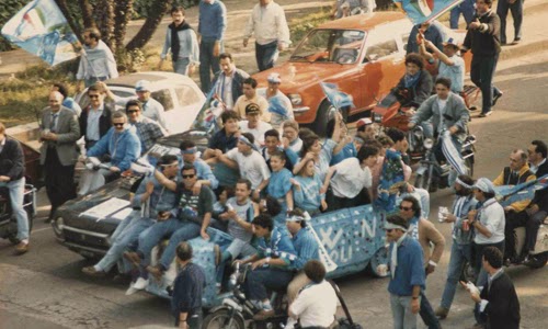 Questo volume, molto bello e molto utile, testimonia tuttavia la potenza dello stereotipo: la selezione delle magnifiche foto di Lucas esclude qualsiasi testimonianza che riguardi i napoletani “cattivi”. Nel libro di Ghirelli e Lucas non vi è traccia degli slogan aggressivi, delle coreografie di stadio e fuori stadio imperniate su riferimenti sessuali, scatologici, tanatologici e magari anche un po’ razzisti, dei gruppi di “impresentabili” che pure ebbero un ruolo importante nella festa come ad esempio i femminielli dei Quartieri Spagnuoli. C’è solo una foto in cui l’uso di una simbologia scatologica è opera di bambini di sette-otto anni che, indossando la divisa del Napoli, mimano il soddisfacimento dei propri bisogni corporali dentro impianti igienici decorati con i colori delle squadre avversarie; la foto non ha didascalia.