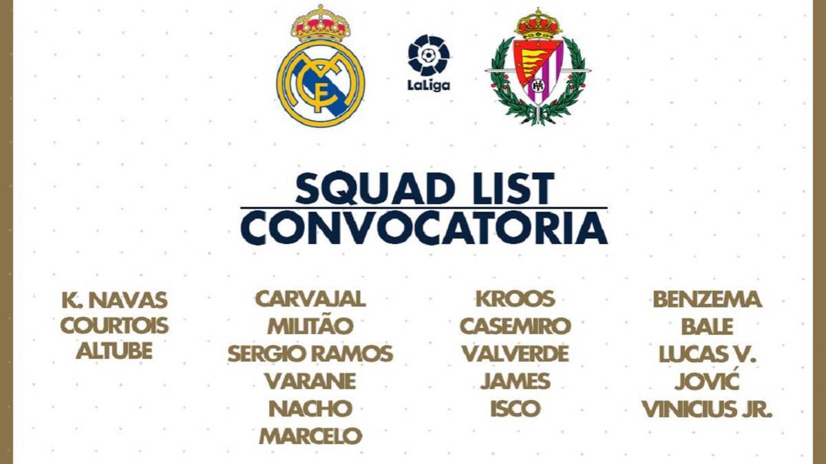 Questa è la lista dei convocati per Real Madrid -Valladolid: