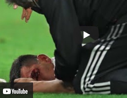 Brutale impatto contro il portiere in uscita. È svenuto per l'impatto. Le immagini sono spaventose.