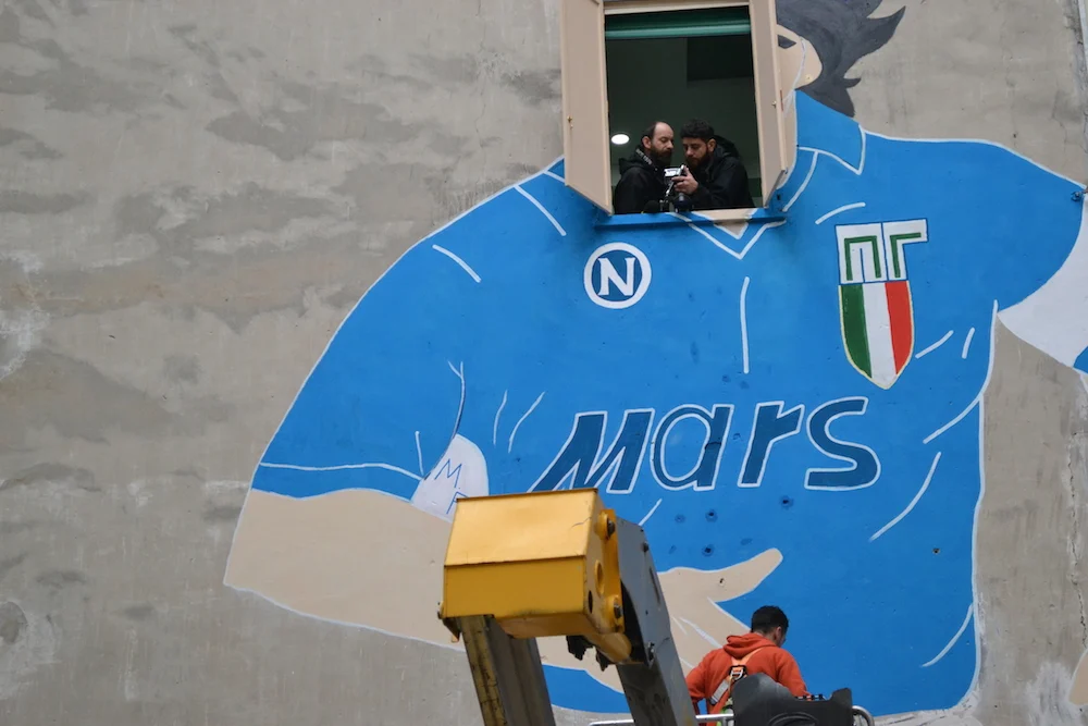 Per tutto il weekend vi abbiamo raccontato in diretta, pennellata per pennellata, il restauro del murale Maradona ad opera di Salvatore Iodice. Vi abbiamo parlato della colletta di quartiere grazie alla quale si è riusciti a restituire il mega Pibe de Oro, realizzato da Mario Filardi trent’anni fa sulla facciata di un palazzo in via Emanuele De Deo, al suo antico splendore. Ma c’è qualcun altro che, come noi, ha trascorso due giorni interi nello slargo ‘ncopp’e Quartier, che ha partecipato alla colletta e che, soprattutto, ha intenzione di rendere il ricordo di quei momenti indelebile nel tempo grazie a un docufilm che racconta, appunto, la storica impresa.