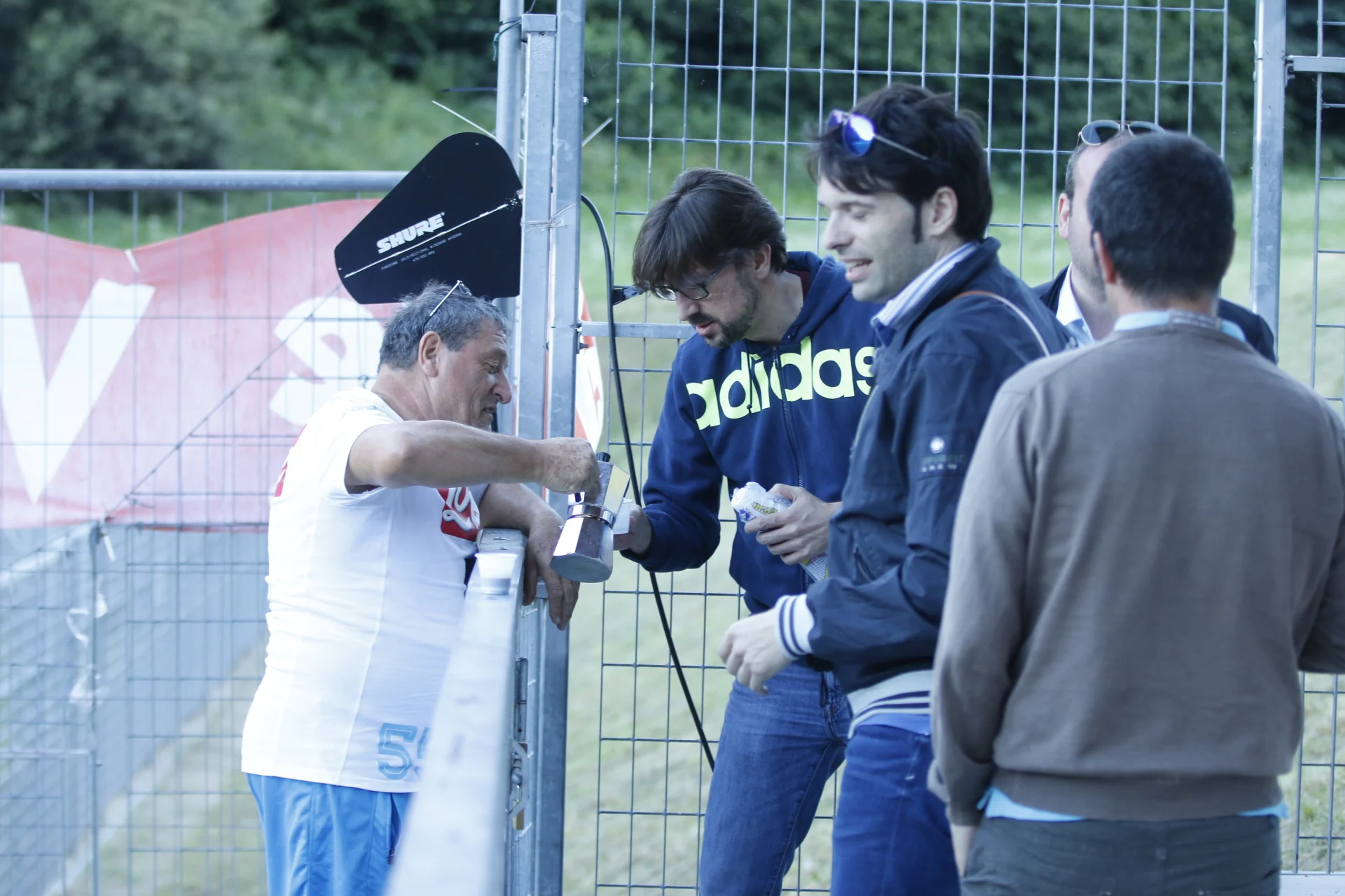 Starace offre il caffè a tre tifosi del Napoli del gruppo Oj vita mia