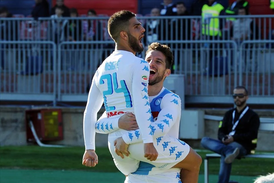 L'esultanza di Insigne e Mertens a Cagliari (foto Cuomo)