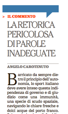 L’altro quotidiano che prende una posizione netta è Repubblica. E lo fa con un editoriale di Angelo Carotenuto capo della redazione sportiva: