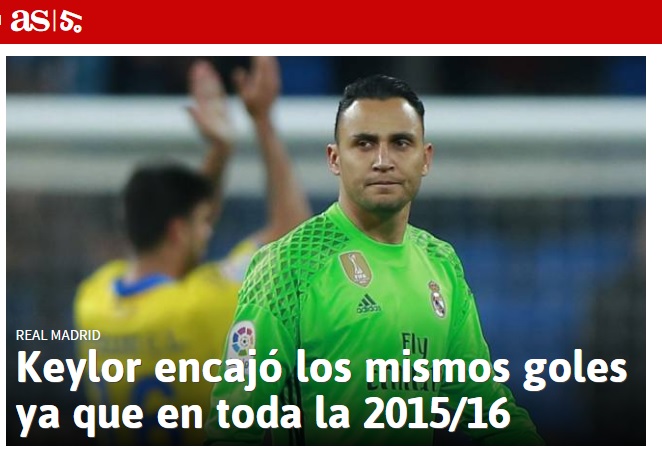 Lo stesso As apre l’edizione online con il pezzo riferito alla nostra immagine d’apertura. C’è Keylor Navas, e c’è la cifra dei gol subiti dalle merengues. Sono 31, in 25 partita. Gli stessi 31 gol incassati nell’intera stagione scorsa. La media, riportata nell’articolo, chiarisce il down nelle prestazioni del portiere costaricano: da 0.82 a 1.11. Non sarebbe un problema, vorrebbe dire che la difesa non ha più lo stesso rendimento di una volta. Ebbene, neanche questo è vero: nello stesso articolo, As sottolinea come sia calato anche il numero di interventi dell’ex portiere del Levante. Dalla 12esima giornata in poi, Navas intercetta il 68% dei tiri che riceve. Precedentemente, questo dato percentuale diceva 80%.
