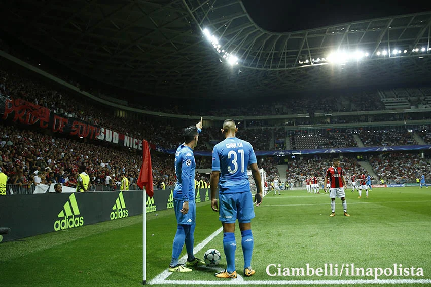 Nizza-Napoli: Callejon e Ghoulam si apprestano a battere un calcio d'angolo. (Photo Matteo Ciambelli)