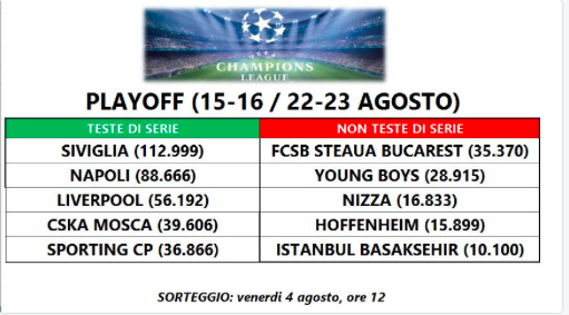 Teste di serie: Siviglia, Napoli, Liverpool, Cska Mosca, Sporting Lisbona