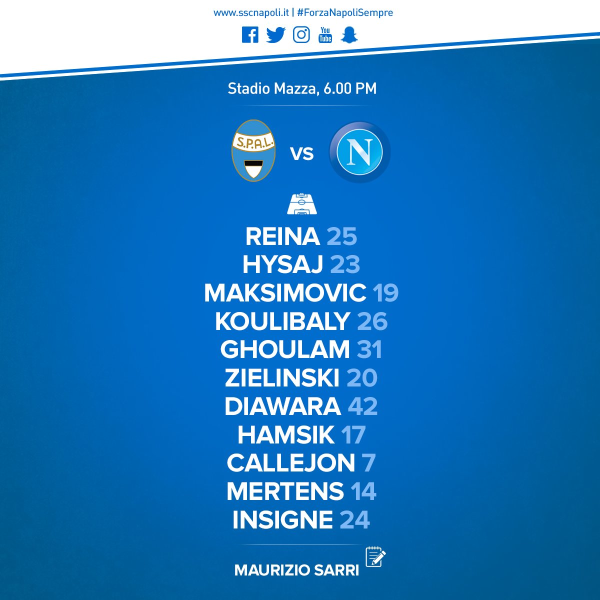 Napoli: Reina, Hysaj, Maksimovic, Ghoulam, Zielinski, Diawara, Hamsik, Callejon, Mertens, Insigne.