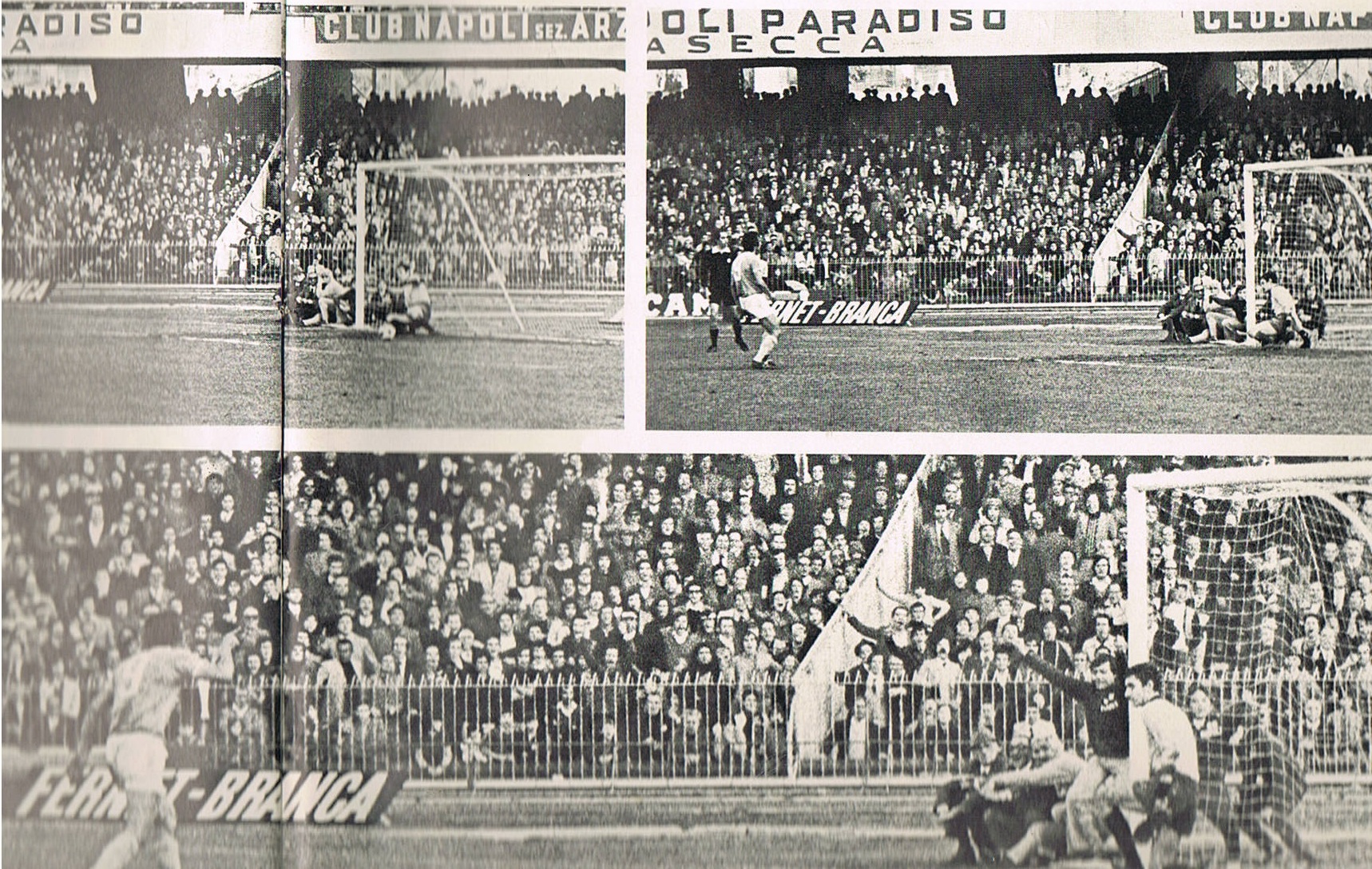 Stagione 1973/74. Il Napoli di Vinicio, il Bologna di Pesaola. Rigore per il Napoli, Clerici segna dal dischetto e poi indica con l'indice il lato da cui ha tirato. L'arbitro lo espelle.