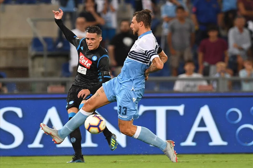Primma jurnata d’’o campiunato duimiladiciotto/duimila diciannove e pprimmu passo annate guagliú!Cumminfatte ajeressera a ll’Ulimpico rumano ‘a scuatra cuana (azzurra) d’’o Jancone scennette ‘int’â tana d’’a Lazzio e dde rippe o de rappe se purtaje â casa ‘e tre ppunte dànno ‘a risposta â vecchia zoccola ca, tanto pe nnun cagnà, ‘mmerz’ê sseje s’era fatto dà ‘na mana da chella grannalatrina ‘e ll’arbitro Pasqua pe vvattere ‘o Chievo ô 93’ doppo n’atalossa (prestazione) nun certo ‘ntusiasmante d’’e mariuole d’itaglia janche e nnire. Assaje cunvincente ‘mmece l’atalossa (prestazione) d’’a scuatra cuana (azzurra) contro a cchella d’’o pappavallo ‘e Lotito cu ‘e guagliune d’’o Jancone [ajere cu ‘na muntazzimma (divisa) ‘e ‘nu jettatorio bblu-savoia…] ca facetteno ‘o ppussibbile pe ffà sí ca ll’avventura d’’o mutarribbo (allenatore) lloro accumminciasse cu ttre ppunte assaje pesante, visto ca servetteno, cumme v’aggiu ditto, a ddà ‘na risposta i a ttenè ‘o passo d’’a vecchia zoccola i a ffà capí â Lazzio ca nun lle fósse avastato ‘o stuco (gol) overo bbello ‘e Ciro Immobile signato a mmità d’’o primmo ajone (tempo)[25’]; cumminfatte da chillu mumento ‘o Napule ce se mettette cu ‘a panza e ccu ‘o penziero diciso a rrimuntà i a vvencere guadagnanno metre e arrivate ô tentío (allo scadere) d’’o primmo ajone (tempo)[47’] sant’Arcadio truvaje ‘nu bbellu russimmo (pareggio)e ppacienza si d’addaffe (reti) n’êtte signà ddoje primma ca chillu sacchetto ‘e ll’ummeto Banti[3 e ppo ve dico] ce n’assignasse una bbona…