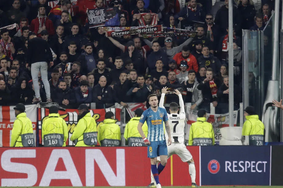 C’è una fotografia, almeno noi ne abbiamo trovata soltanto una, che porta con sé la notizia del gesto provocatorio di Cristiano Ronaldo davanti ai tifosi dell’Atletico Madrid al termine di Juventus-Atletico finita 3-0 in Champions. È la Champions che certifica la provocazione di Ronaldo nei confronti dei tifosi avversari.
