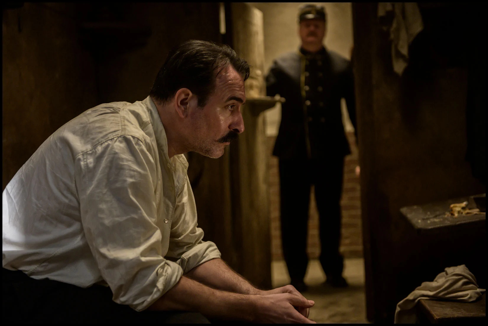 Da questa vicenda, l’unico che trae qualche beneficio è il maggiore antisemita Marie-George Picquart (Jean Dujardin) – che ha una relazione con la signora Monnier (Emmanuelle Seigner) – che approfittando della malattia del precedente titolare diviene tenente colonnello e comandante del servizio di statistica dei Servizi segreti. In questa sua veste seguendo il capitano Esterhazy si accorge che il traditore è lui e che le prove sono state fabbricate ad arte proprio dall’ufficio di cui è a capo. Dreyfus è condannato per ebraicità: dal calligrafo al maggiore Henry tutti tramano per questo responso annunciato. Picquart allora informa i vertici politici e gerarchici della sua convinzione fondata, ma trova un muro di gomma, perché nell’esercito “ci sono gli ordini dei superiori e se noi non obbediamo siamo nessuno”.