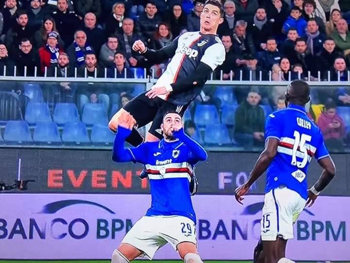 Cristiano ha sovrastato il difensore sampdoriano Murru, che doveva bloccarlo, che è alto un metro e 80: