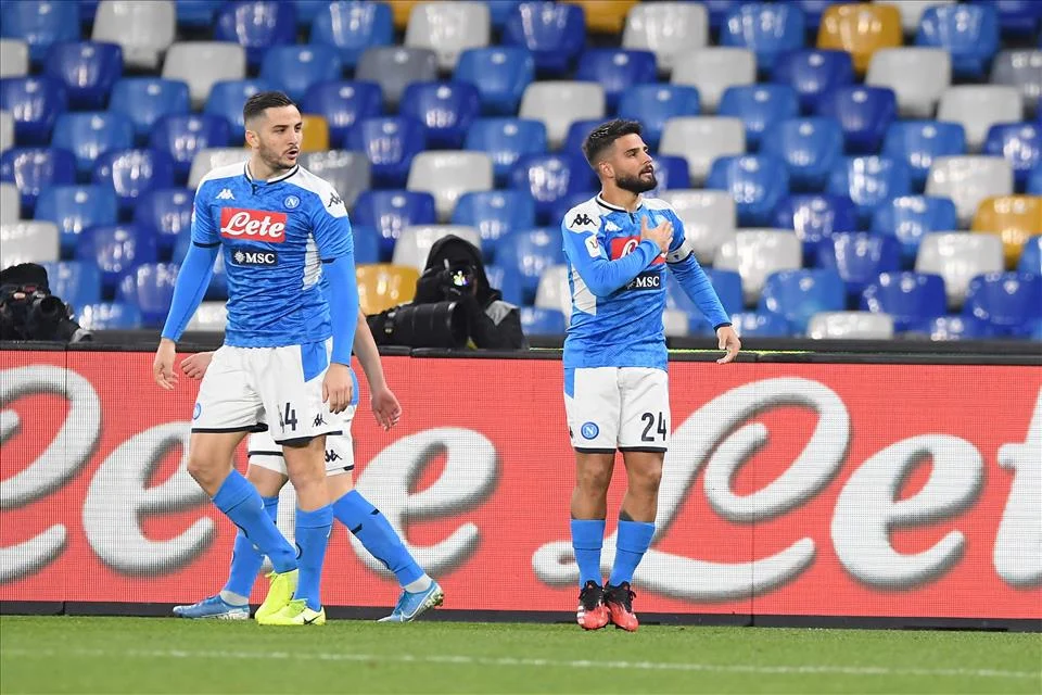 INSIGNE[Lorenzigno ] 7 Accumminciaje ‘nfra ‘e sische d’’e muidde (tifosi),ma doppo duje minute se chiammaje ll’applavuse signanno e ppigliannose ‘a scuatra ‘ncopp’ê spalle. Finalmente![dô 77′ RUIZ s.v. Trasette justo pe ffà sciatà ‘o capitano.]