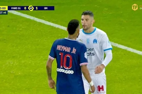 Marseille player Álvaro Gonzalez telling Neymar “shut up monkey” in French.