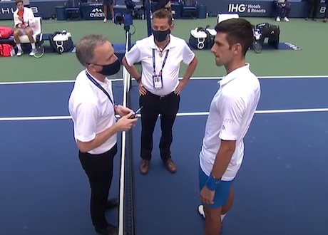 “Ha accentuato, ma a termini di regolamento il rigore si può dare”. Che poi non sia un rigore ma una squalifica, e quella a terra con le mani in faccia non sia un attaccante in preda ad una simulazione improvvisa bensì una giudice di linea colpita alla gola dalla pallata di stizza del numero 1 del tennis mondiale, poco importa. Siamo corsi d’impeto alla nostra var casalinga, tra il tinello e la parete attrezzata, per rimandare al rallentatore il riflesso filmato dello scandalo: Djokovic che abbatte una povera donna, una delle pochissime anime presenti all’Arthur Ashe, il campo centrale degli US Open senza pubblico. Per finire espulso e squalificato, condannato con rito abbreviato alla gogna mediatica.