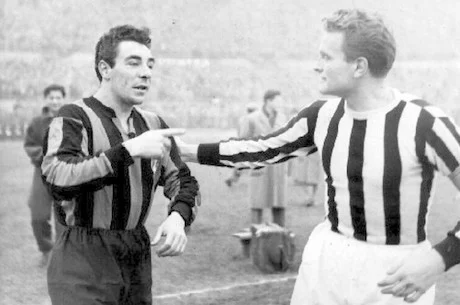 In quegli anni Cinquanta, fra la coda dei Quaranta e l’inizio dei Sessanta, due protagonisti assoluti sull’erba degli stadi, due rivali, due caratteri contrapposti, un angelo biondo e un demonio nero, Giampiero Boniperti, novarese di Barengo, e Benito Lorenzi, toscano di Buggiano. La Juve e l’Inter di quei tempi.