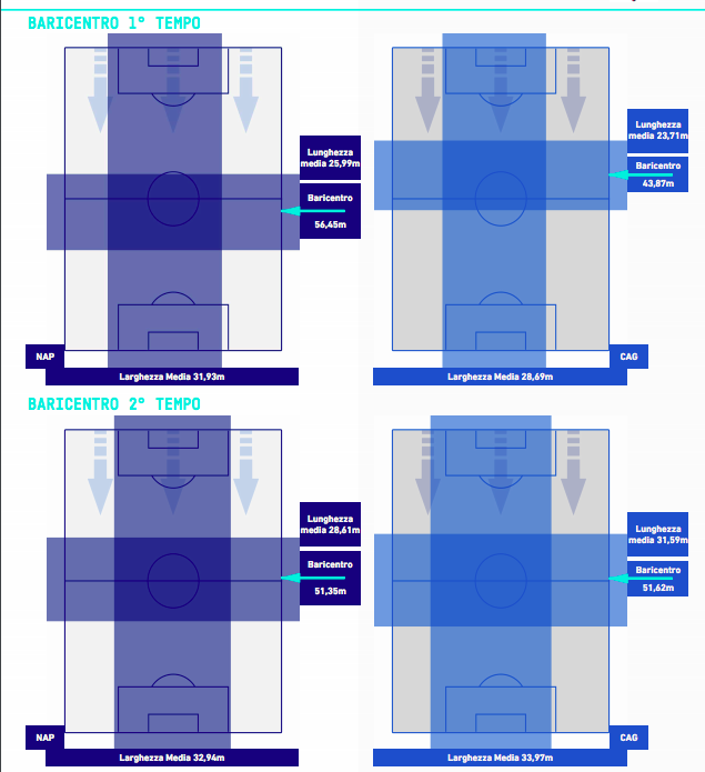 Anche i dati sul baricentro confermano che il Cagliari, nella ripresa, ha attaccato con maggiore aggressività