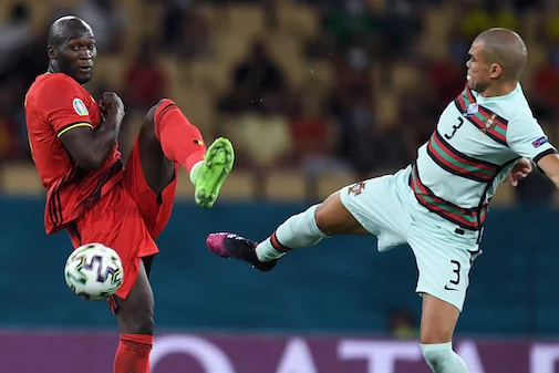 Siviglia (Spagna) 27/06/2021 - Euro 2020 / Belgio-Portogallo / foto Uefa/Image Sport nella foto: Romelu Lukaku-Pepe