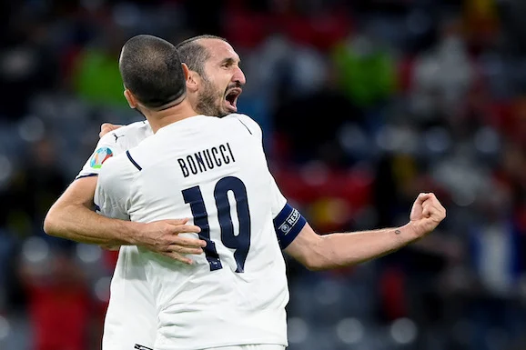 Monaco di Baviera (Germania) 02/07/2021 - Euro 2020 / Belgio-Italia / foto Uefa/Image Sport nella foto: Leonardo Bonucci-Giorgio Chiellini
