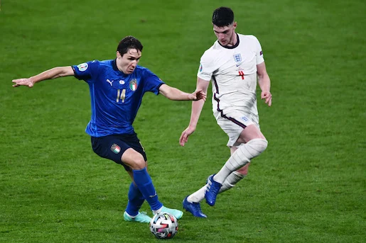 Mg Londra (Inghilterra) 11/07/2021 - Euro 2020 / Italia-Inghilterra / foto Matteo Gribaudi/Image Sport nella foto: Federico Chiesa-Decian Rice