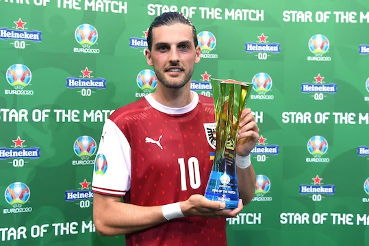 È il centrocampista che sul 2-0 di Italia-Austria sferrò il tiro che costrinse Donnarumma a una paratona sulla sua sinistra. Fu il migliore in campo di Austria-Ucraina.