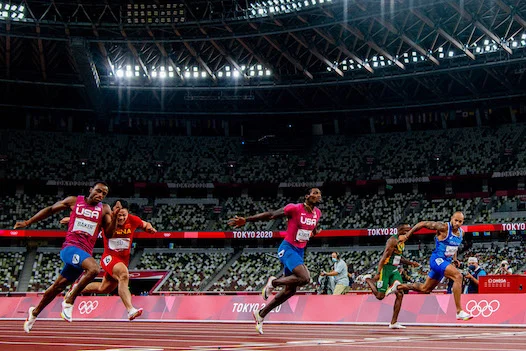 Tokyo (Giappone) 01/08/2021 - Atletica Leggera 100 mt / Olimpiadi Tokyo 2020 / foto Panoramic/Image Sport nella foto: Marcell Jacobs-Ronnie Baker-Fred Kerley