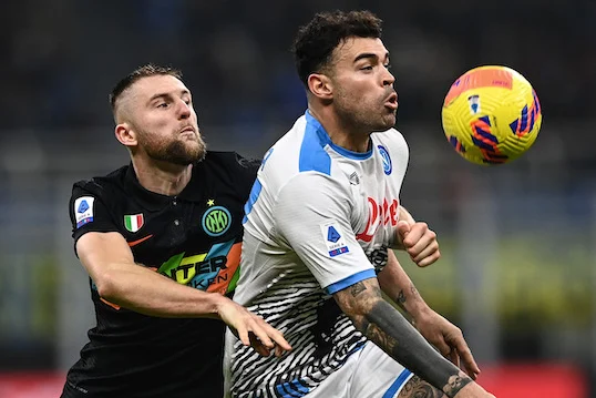 Mg Milano 21/11//2021 - campionato di calcio serie A / Inter-Napoli / foto Matteo Gribaudi/Image Sport nella foto: Andrea Petagna-Milan Skriniar