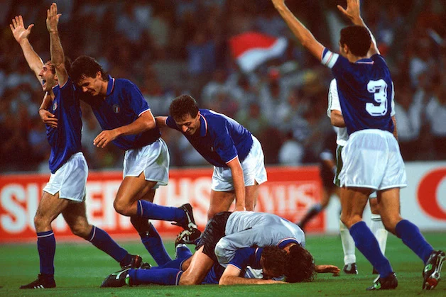 1990 archivio Storico Image Sport / Italia / esultanza a fine gara Italia / foto Imago/Image Sport