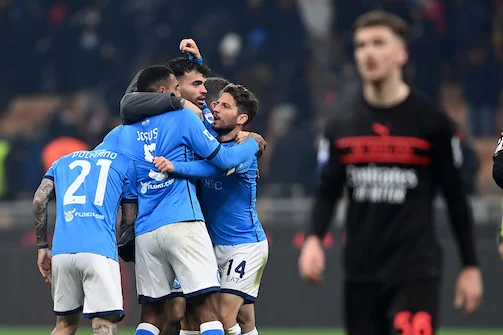 Db Milano 19/12/2021 - campionato di calcio serie A / Milan-Napoli / foto Daniele Buffa/Image Sport nella foto: esultanza fine gara Napoli