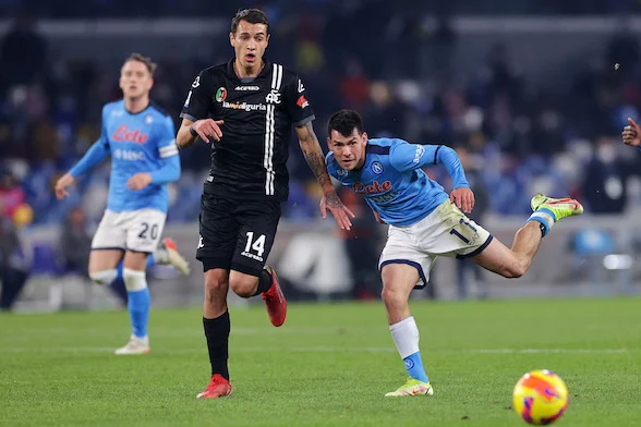 Napoli 22/12/2021 - campionato di calcio serie A / Napoli-Spezia / foto Insidefoto/Image Sport nella foto: Jakub Kiwior-Hirving Lozano