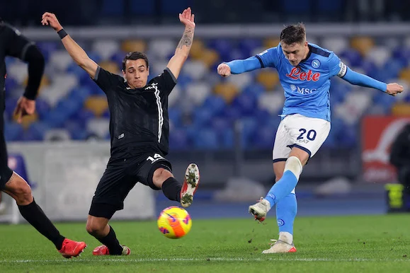 Piotr Zielinski of SSC Napoli during the Serie A football match between SSC Napoli and Spezia Calcio at Diego Armando Maradona stadium in Napoli (Italy), December 22nd, 2021. Photo CesarePurini / Insidefoto