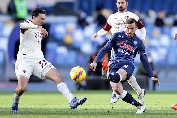 Napoli 23/01/2022 - campionato di calcio serie A / Napoli-Salernitana / foto Insidefoto/Image Sport nella foto: Filippo Delli Carri-Fabian Ruiz