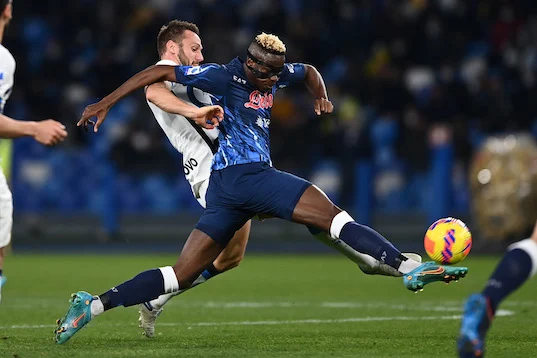Al terzo minuto si capisce che Osimhen ha dimenticato l’incidente dell’andata, si getta senza timori in un duello di testa in area molto simile a quello che gli provocò il tremendo infortunio.