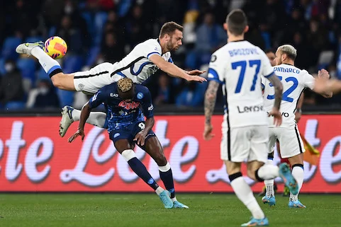 Db Napoli 12/02/2022 - campionato di calcio serie A / Napoli-Inter / foto Daniele Buffa/Image Sport nella foto: Stefan de Vrij-Victor Osimhen
