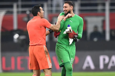 Mg Milano 13/02/2020 - Coppa Italia / Milan-Juventus / foto Matteo Gribaudi/Image Sport nella foto: Gianluigi Donnarumma-Gianluigi Buffon