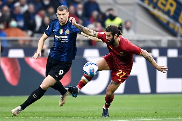 Db Milano 23/04/2022 - campionato di calcio serie A / Inter-Roma / foto Daniele Buffa/Image Sport nella foto: Edin Dzeko-Sergio Oliveira