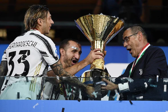 Mg Torino 01/08/2020 - campionato di calcio serie A / Juventus-Roma / foto Matteo Gribaudi/Image Sport nella foto: Maurizio Sarri-Giorgio Chiellini-Federico Bernardeschi