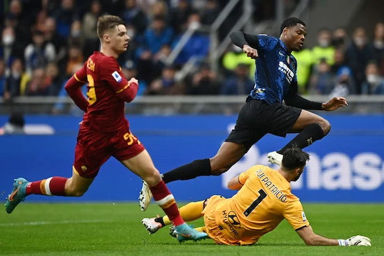 Mg Milano 23/04/2022 - campionato di calcio serie A / Inter-Roma / foto Matteo Gribaudi/Image Sport nella foto: esultanza gol Denzel Dumfries