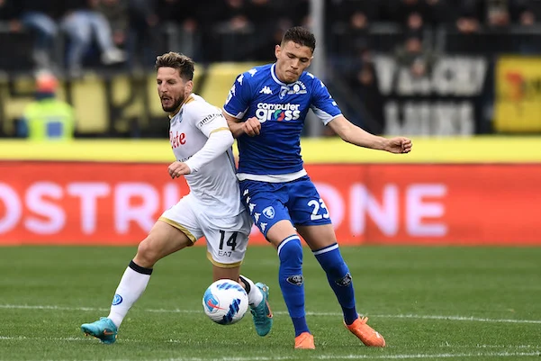 Empoli 24/04/2022 - campionato di calcio serie A / Empoli-Napoli / foto Image Sport nella foto: Dries Mertens-Kristjan Asllani