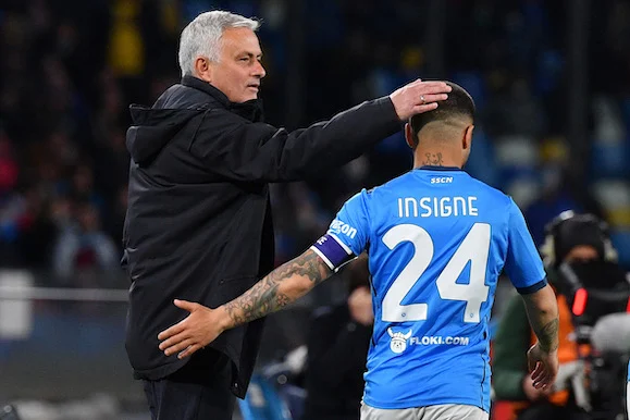 Napoli 18/04/2022 - campionato di calcio serie A / Napoli-Roma / foto Image Sport nella foto: Jose' Mourinho-Lorenzo Insigne