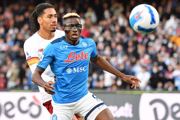 Napoli 18/04/2022 - campionato di calcio serie A / Napoli-Roma / foto Image Sport nella foto: Victor Osimhen-Chris Smalling