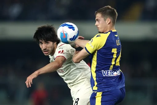 Verona 08/05/2022 - campionato di calcio serie A / Hellas Verona-Milan / foto Image Sport nella foto: Sandro Tonali-Ivan Ilic