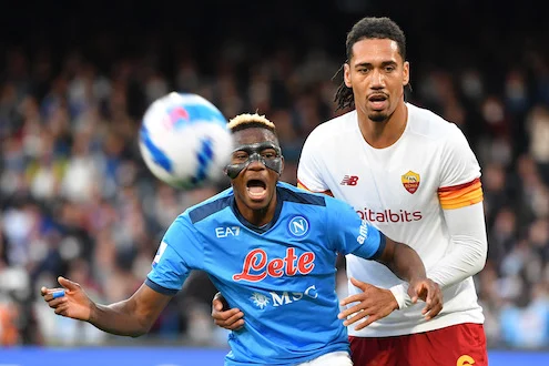 Napoli 18/04/2022 - campionato di calcio serie A / Napoli-Roma / foto Image Sport nella foto: Victor Osimhen-Chris Smalling