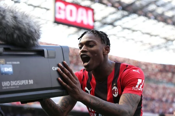 Milano 01/05/2022 - campionato di calcio serie A / Milan-Fiorentina / foto Image Sport nella foto: esultanza gol Rafael Leao