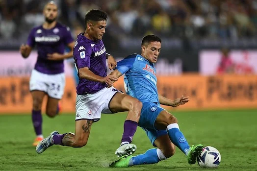 Mp Firenze 28/08/2022 - campionato di calcio serie A / Fiorentina-Napoli / foto Matteo Papini/Image Sport nella foto: Giacomo Raspadori-Lucas Martinez Quarta