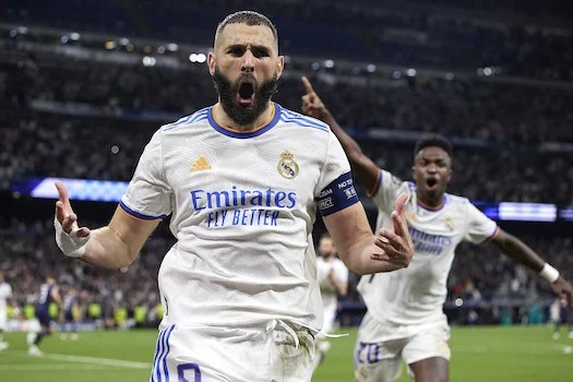 Madrid (Spagna) 04/05/2022 - Champions League / Real Madrid-Manchester City / foto Imago/Image Sport nella foto: esultanza gol Karim Benzema ONLY ITALY