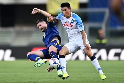 Mg Verona 15/08/2022 - campionato di calcio serie A / Hellas Verona-Napoli / foto Matteo Gribaudi/Image Sport nella foto: Thomas Henry-Kim Min-jae