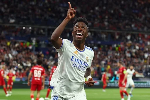 Parigi (Francia) 28/05/2022 - finale Champions League / Liverpool-Real Madrid / foto Imago/Image Sport nella foto: esultanza gol Vinicius Junior