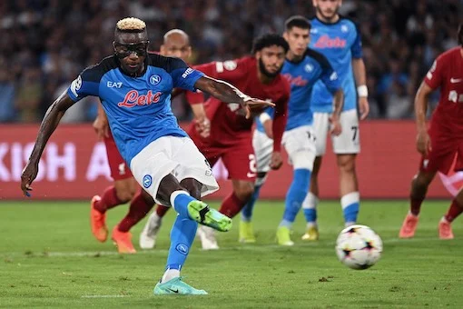 Ci Napoli 07/09/2022 - Champions League / Napoli-Liverpool / foto Carmelo Imbesi/Image Sport nella foto: rigore sbagliato Victor Osimhen