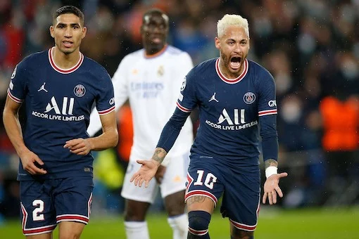 Parigi (Francia) 16/02/2022 - Champions League / Paris Saint Germain-Real Madrid / foto Imago/Image Sport nella foto: Neymar-Achraf Hakimi